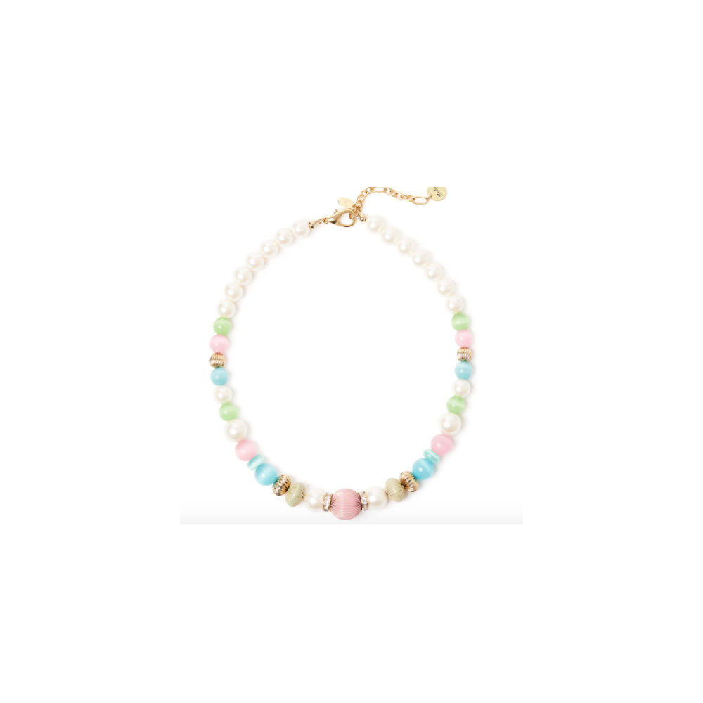 Accattivante e chic questo girocollo aggiunge un tocco prezioso su qualsiasi mise. Design con luminoso filo composto da perle, cromatiche boule e squisiti elementi rigati che insieme arricchiscono di splendore il look. Un accessorio perfetto in qualunque occasione, nelle sue cromie multicolore e oro. Targhetta Sodini sull'estensione.