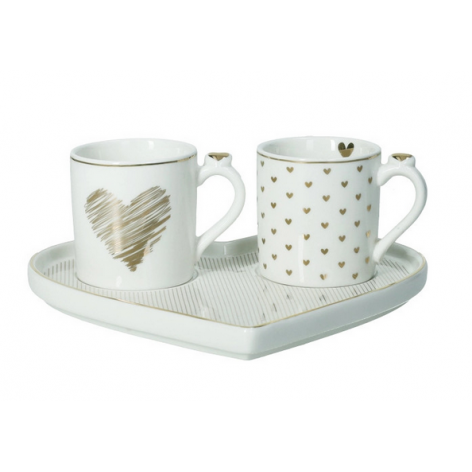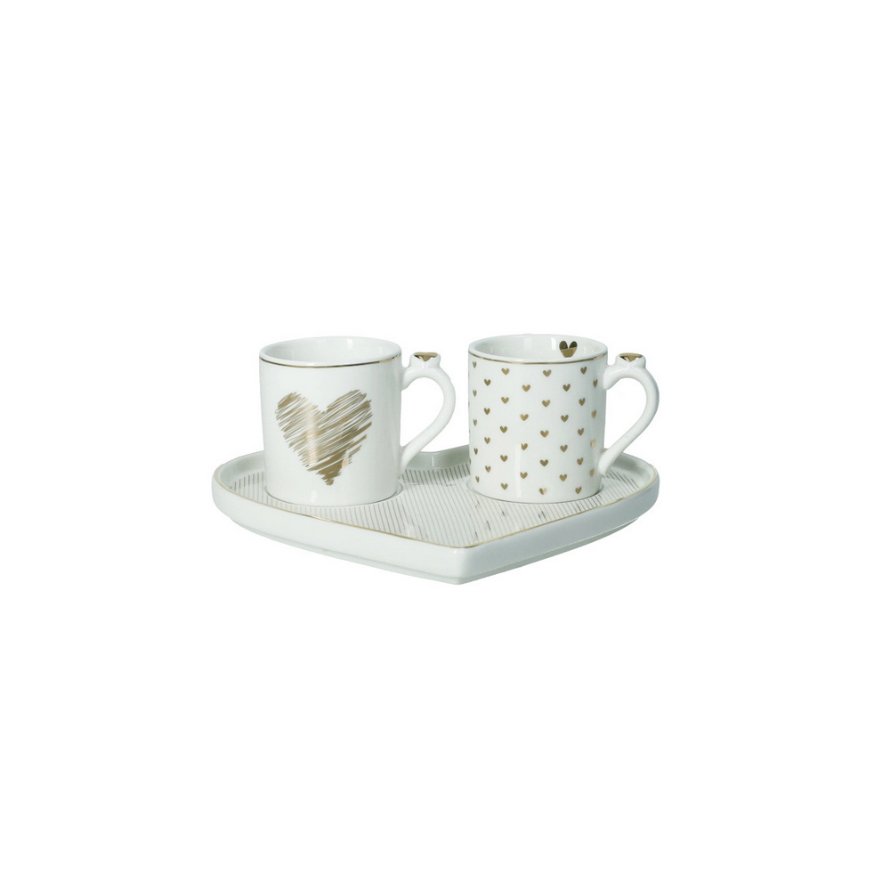 Pausa caffè con... l'Amore Mio! Condividi il tuo momento di relax con chi ti fa star bene: amore, amicizia, affetto e tenerezza brillano tra cuoricini e geometrici Decori esaltati dal l'eleganza della porcellana. Una collezione romantica e deliziosa, che brilla d'oro e di poetico star bene.
