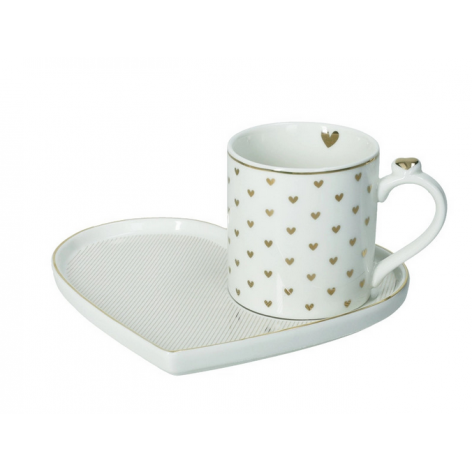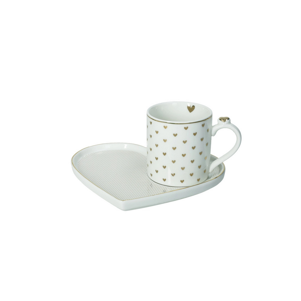 Pausa caffè con... l'Amore Mio! Condividi il tuo momento di relax con chi ti fa star bene: amore, amicizia, affetto e tenerezza brillano tra cuoricini e geometrici Decori esaltati dal l'eleganza della porcellana. Una collezione romantica e deliziosa, che brilla d'oro e di poetico star bene.