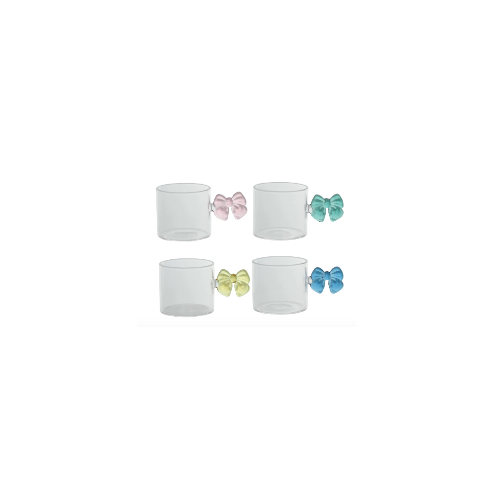 Un tocco di magia per la tua pausa caffè! Il set di tazzine Fiocco in vetro firmato Brandani conquista al primo sguardo, unendo la creatività di una tavola innovativa al fascino del vetro trasparente, che esalta colore e cremosità della bevanda contenuta. Il manico a forma di stella -disponibile in quattro colori assortiti- aggiunge un grazioso dettaglio di design dall’accento gioioso e sofisticato.