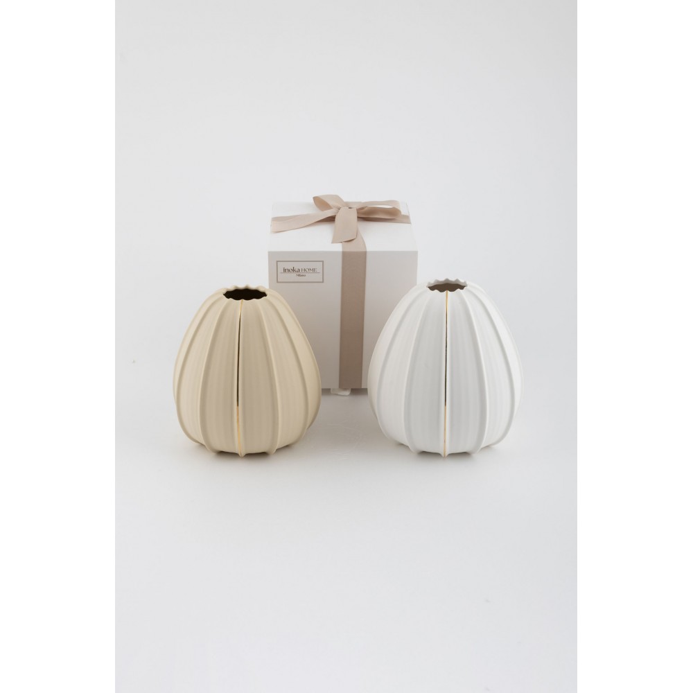 Vaso grande largo in porcellana bianca e beige, assortito nei due colori.