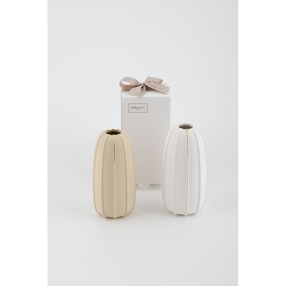 Vaso piccolo in porcellana bianca e beige, assortito nei due colori.