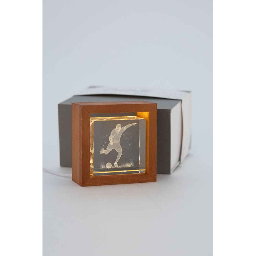 Teca laser piccola con soggetto calciatore e luce integrata