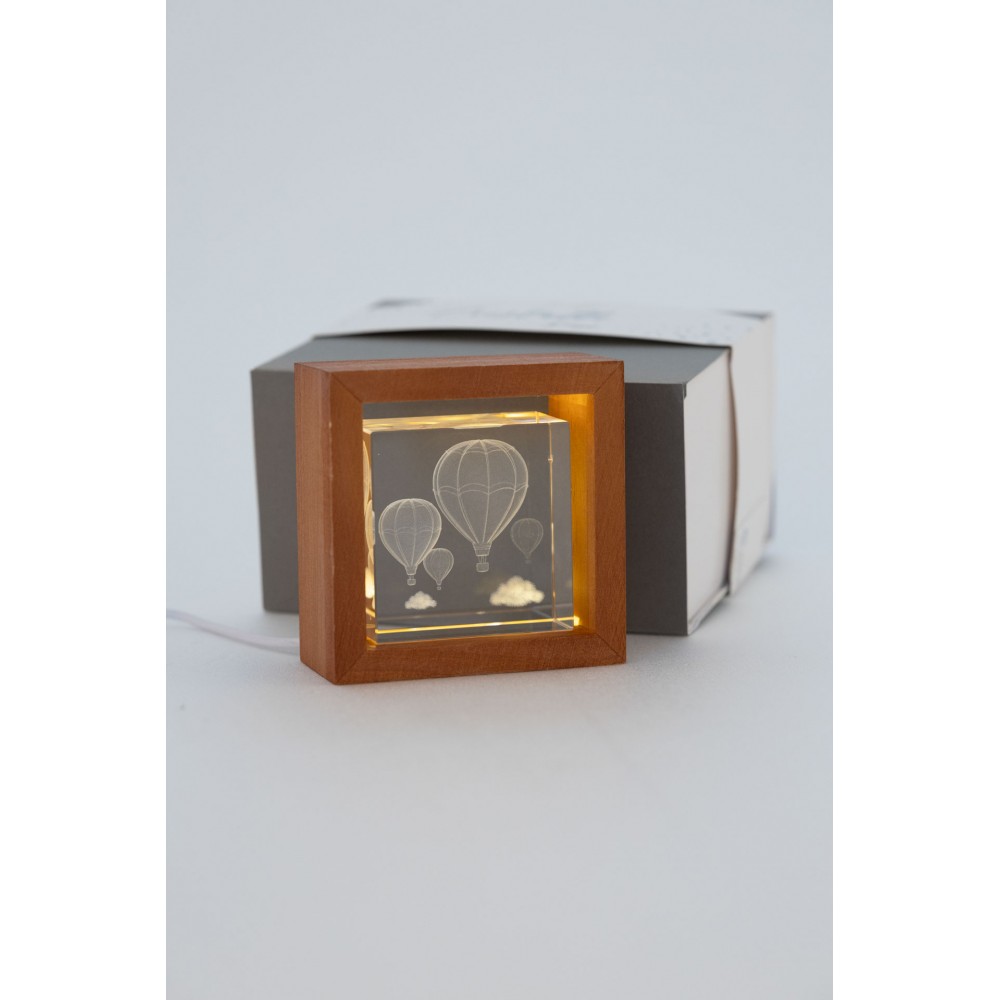 Teca laser piccola con soggetto mongolfiera e luce integrata