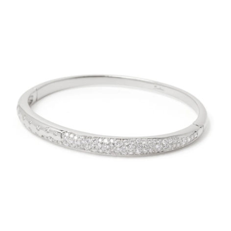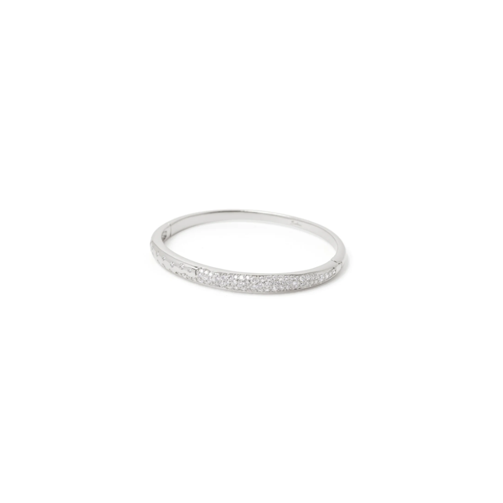 Scopri il fascino di indossare un bracciale rigido large dal design luminoso, con splendente fascia bombata e affusolata impreziosita da un originalissimo pattern con brillantissimo pavè di cristalli. Un accessorio di gran classe con accento trendy in una versione dalle cromie del rodio, per essere sempre al centro dell'attenzione, con logo Sodini.
