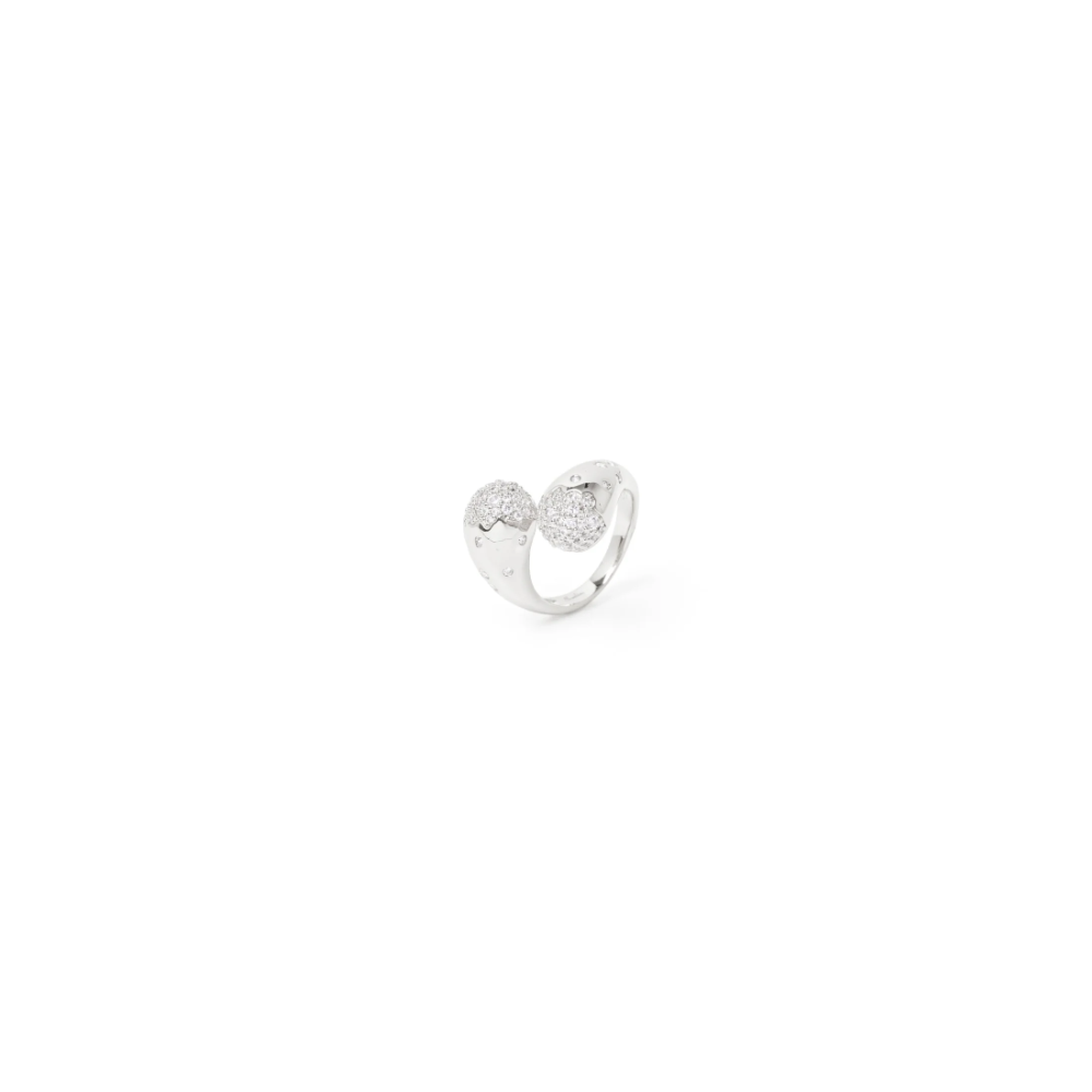 Se cerchi un gioiello che ti distingua scegli questo sfarzoso anello regolabile dal design contrarier, con splendente fascia affusolata che sulle due ampie estremità presenta brillantissimi pavè di cristalli, per un unicum che ti illumina il look. Un accessorio che cattura ogni sguardo, in una versione dalle cromie del rodio, logo Sodini sulla fascia.