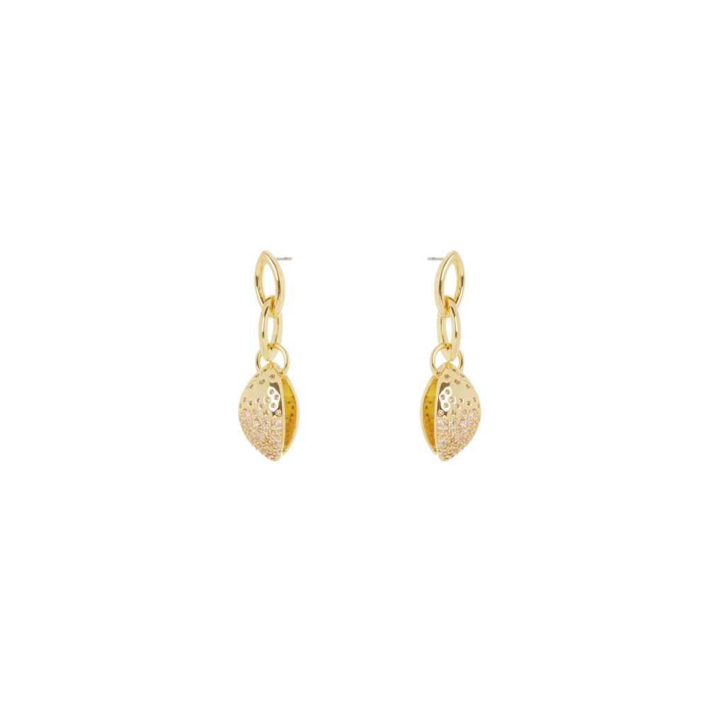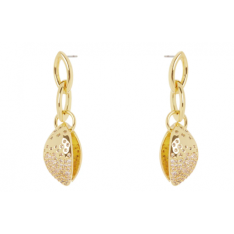 Un paio di orecchini sofisticati dal design originalissimo, con splendente catena a due maglie che sorregge un accattivante pendente a mandorla impreziosito da brillantissimo pavè di cristalli, per un unicum che porta splendore al viso. Accessori di pregio ideali per chi si sa distinguere, perfetti per serate speciali o quando preferisci, in una versione dalle cromie dell'oro. Logo Sodini sul retro.