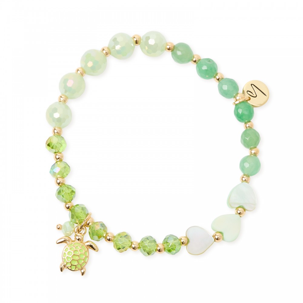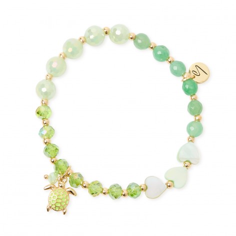 Bracciale elastico cuoricini perline e tartarughina Kai - Verde - Sodini 710451B