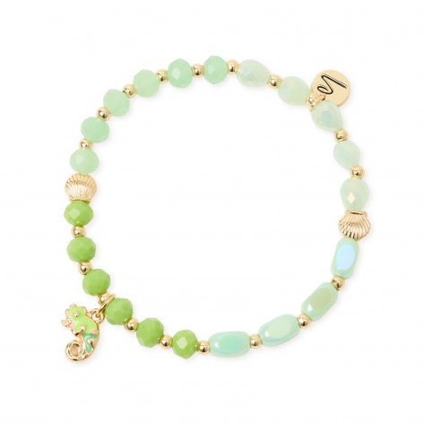 Bracciale elastico perline, conchigliette e camaleonte - Kai - Verde - Sodini 710453B