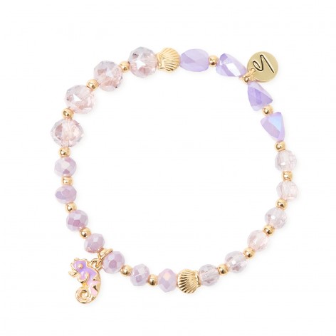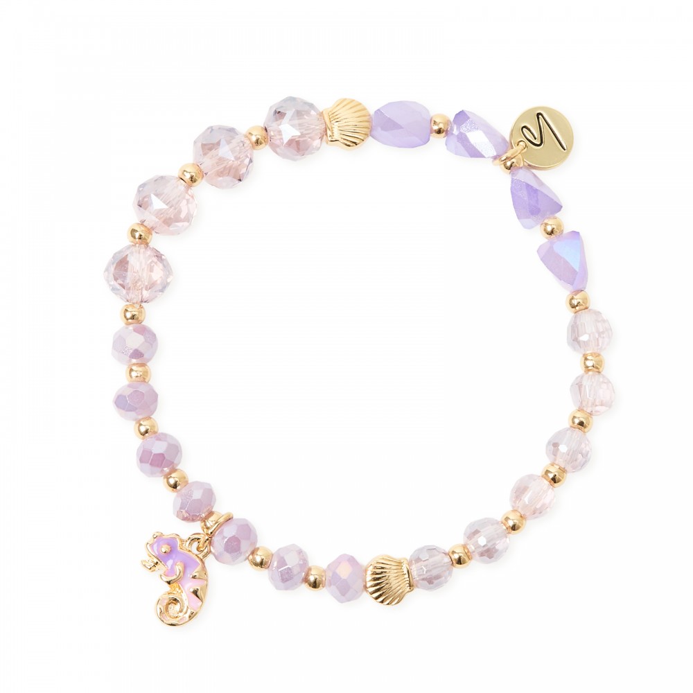 Bracciale elastico perline, conchigliette e camaleonte - Kai - Viola - Sodini 710453V