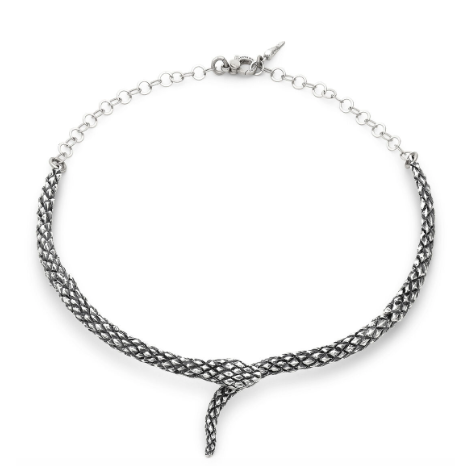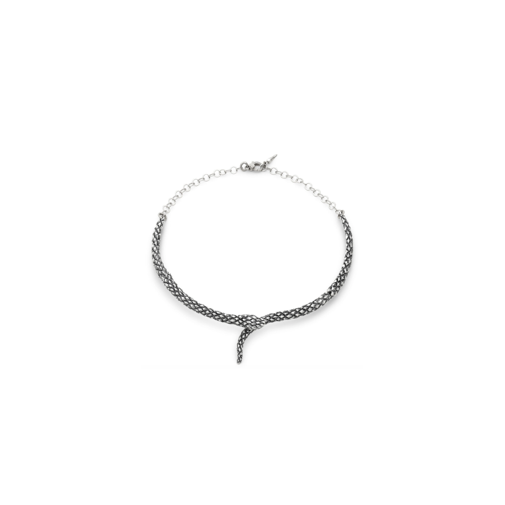 Nella Collana Serpente, il tema animalier viene interpretato con grande capacità, realizzando un gioiello elegante e raffinato. Ogni dettaglio racconta equilibrio, forza e trasformazione, simboli antichi che si fondono in un design contemporaneo e distintivo. La collana risalta sul décolleté, con la sua texture di argento brunito, grazie agli invisibili giunti snodati. Una piccola opera d'arte simbolo della maestria dei nostri artigiani.