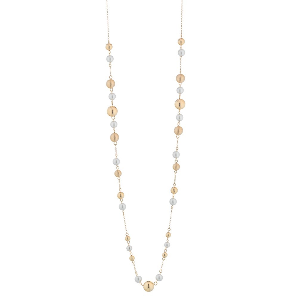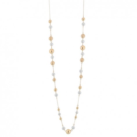 Collana in Argento 925/000 dorato e caratterizzata da un alternarsi di perle naturali e boules in argento.
