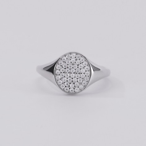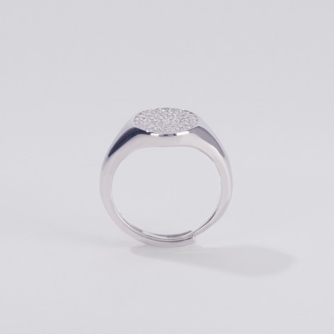 Anello chevalier in argento con pavé di zirconi.