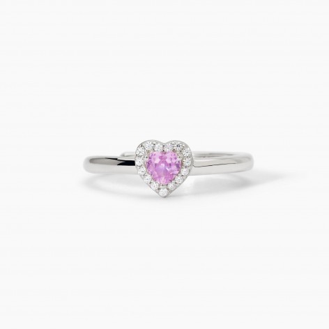 Anello da donna regolabile in argento rodiato con tormalina sintetica taglio cuore e zirconi bianchi.
