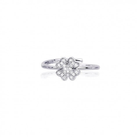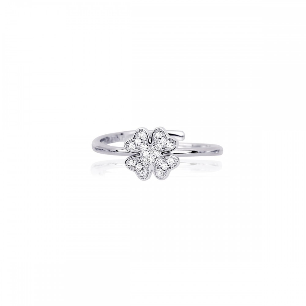 Anello in argento con quadrifoglio in pavé di zirconi.