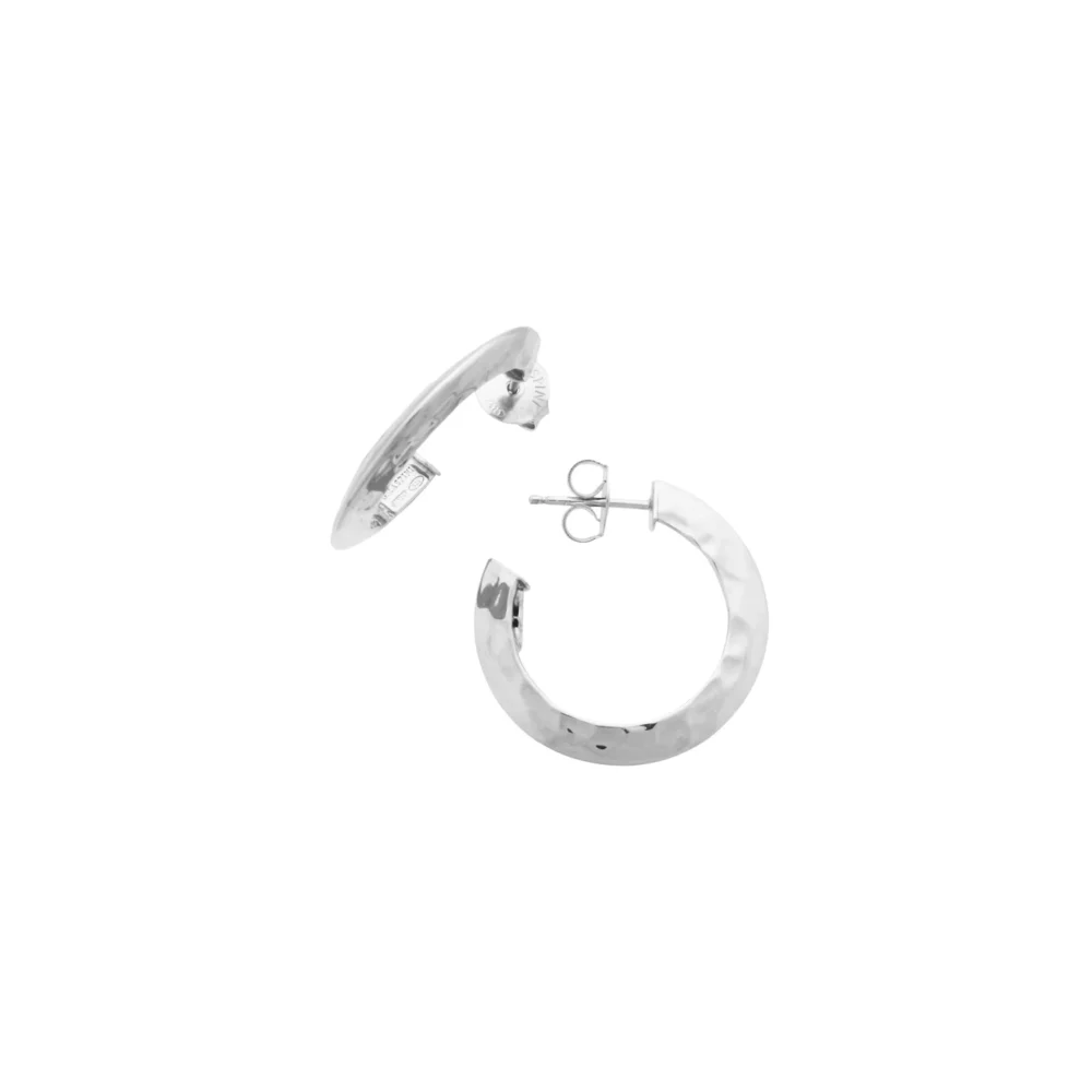 Giovanni Raspini esprime con classe l'abilità di interpretare il design contemporaneo attraverso i gioielli. Negli orecchini a cerchio Blade, in argento dorato, la forma perfetta e la texture martellata regalano una lucentezza straordinaria. Fatti in azienda con lastra d'argento martellata a mano e successivamente dorata.