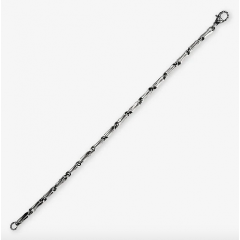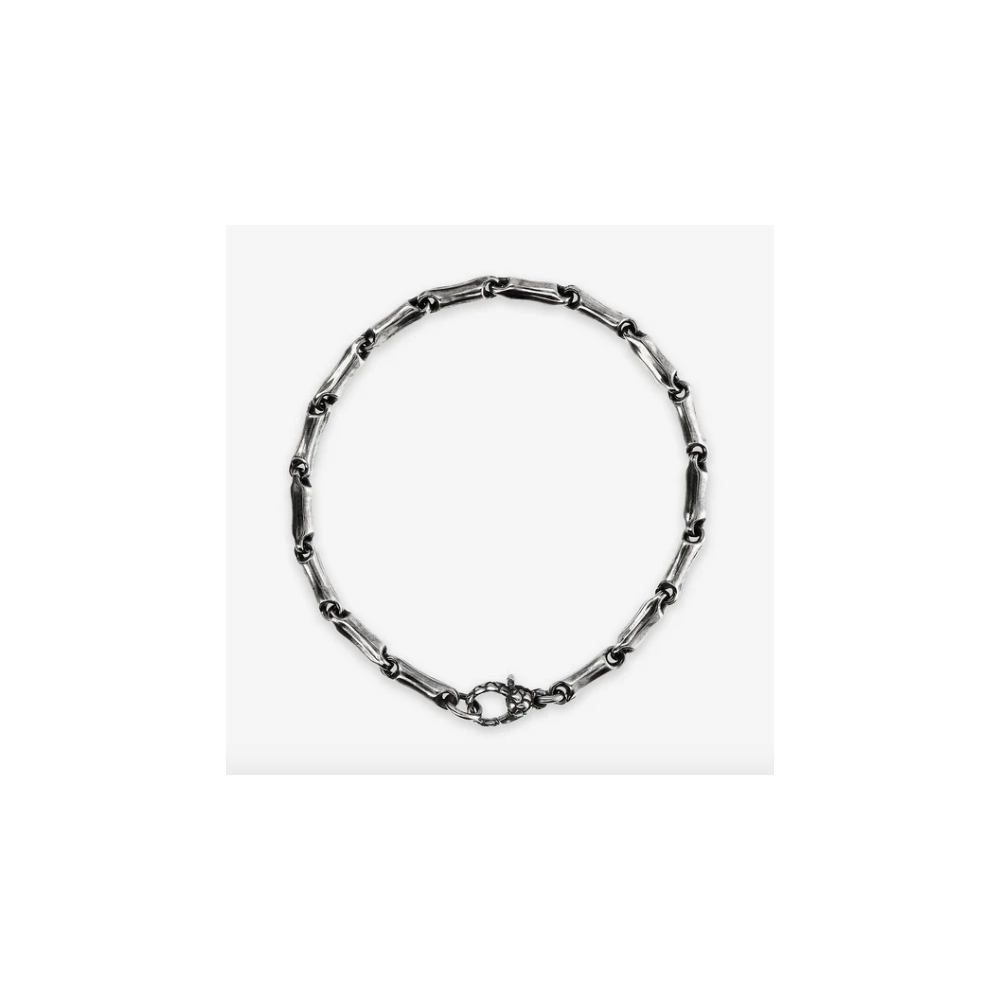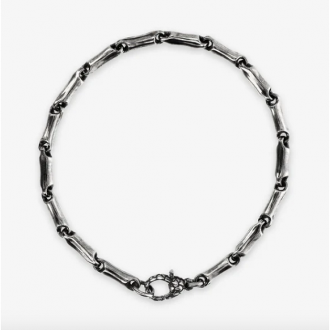 Bracciale uomo Albert M. realizzato su base di argento 925 con catena dal design bambù; chiusura a moschettone con texture. Disponibile in due misure: small (19 cm) e large (21 cm).