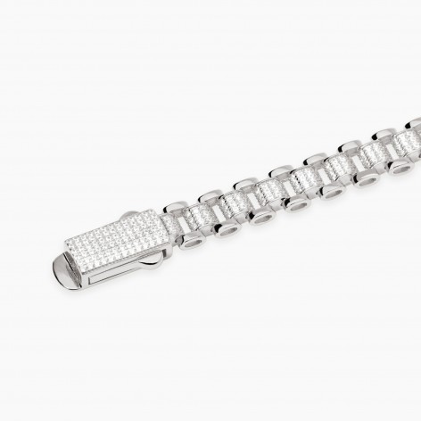 Bracciale in argento rodiato con elementi imperniati e zirconi.