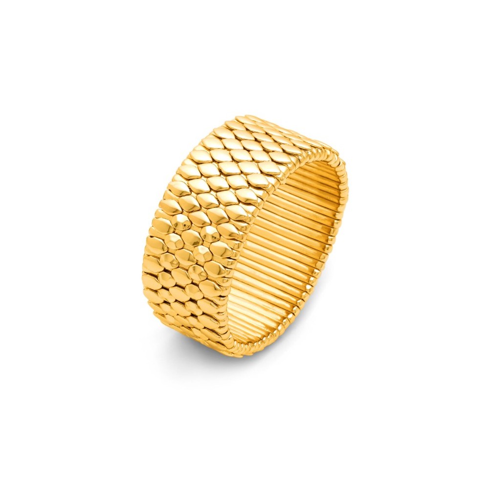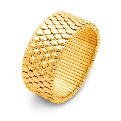 Il bracciale si compone di una texture dinamica e contemporanea, capace di catturare la luce e suggerire un dinamismo visivo unico. La presenza di molle interne nascoste garantisce una vestibilità confortevole. Un gioiello fatto a mano, espressione dell’arte orafa e della maestria artigianale di Giovanni Raspini.