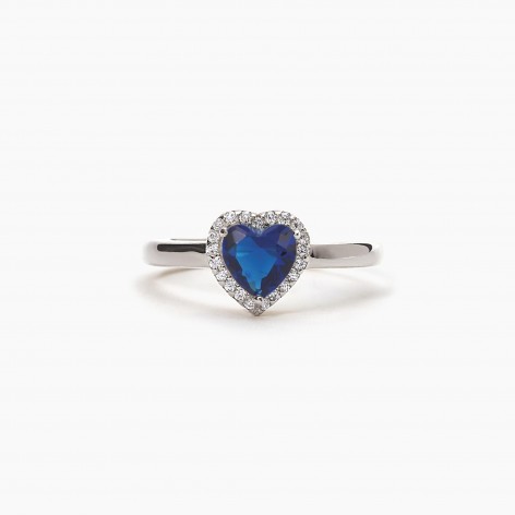 Anello in argento con cuore in zaffiro sintetico e zirconi.