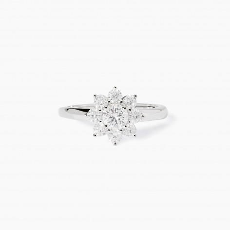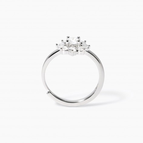 Anello regolabile da donna in argento rodiato con zirconi taglio girasole.