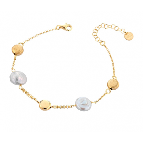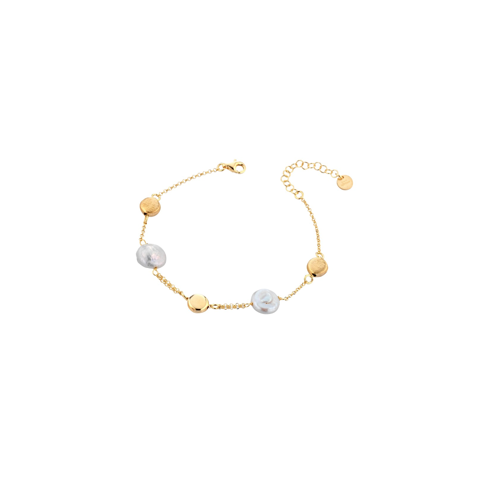 Il Bracciale perle flat - Bonton è costituito da perle flat con elementi in argento dorato, ha una lunghezza totale di 16cm+4cm di catena di prolungamento che permette di regolarne la vestibilità