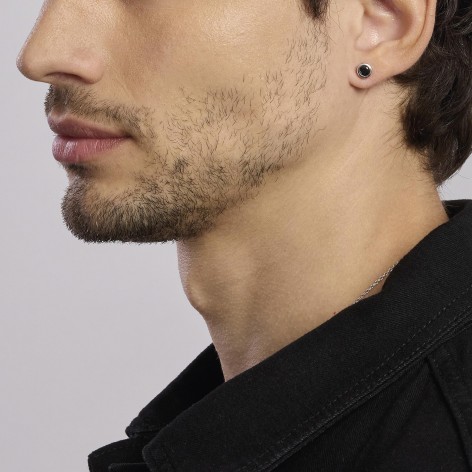 Orecchino uomo con zircone nero e finitura a rombi - Mabina 563620