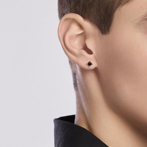 Orecchino da uomo a lobo in argento rodiato con zircone nero.