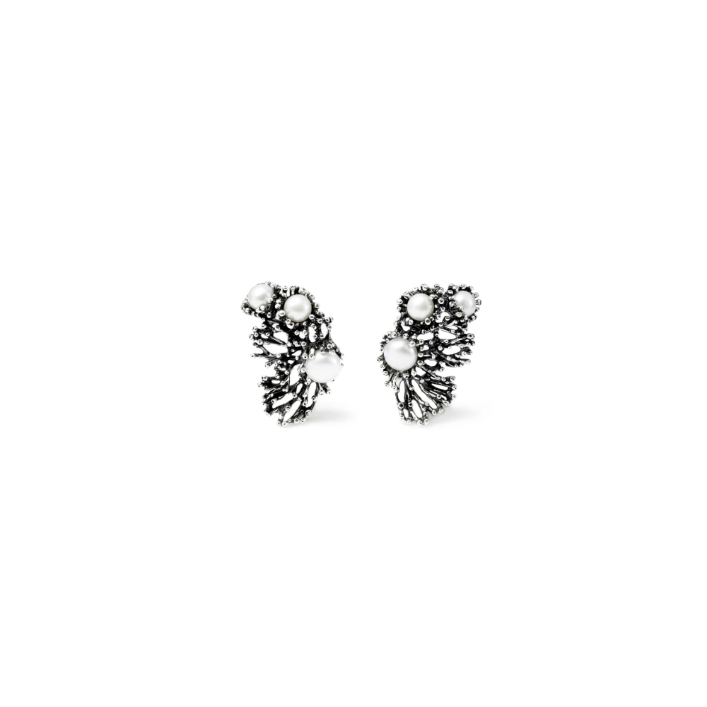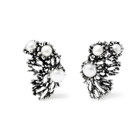 Sotto il mare c'è la vita che danza. Creature profonde, ma luminose d'argento e di perle d'acqua dolce. Orecchini flessuosi realizzati con l'antica tecnica della fusione a cera persa, completamente a mano.