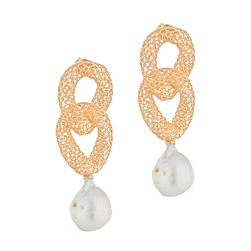 Gli Orecchini dea di mare - Diva sono realizzati con maglie groumette ricamate e perle barocche.