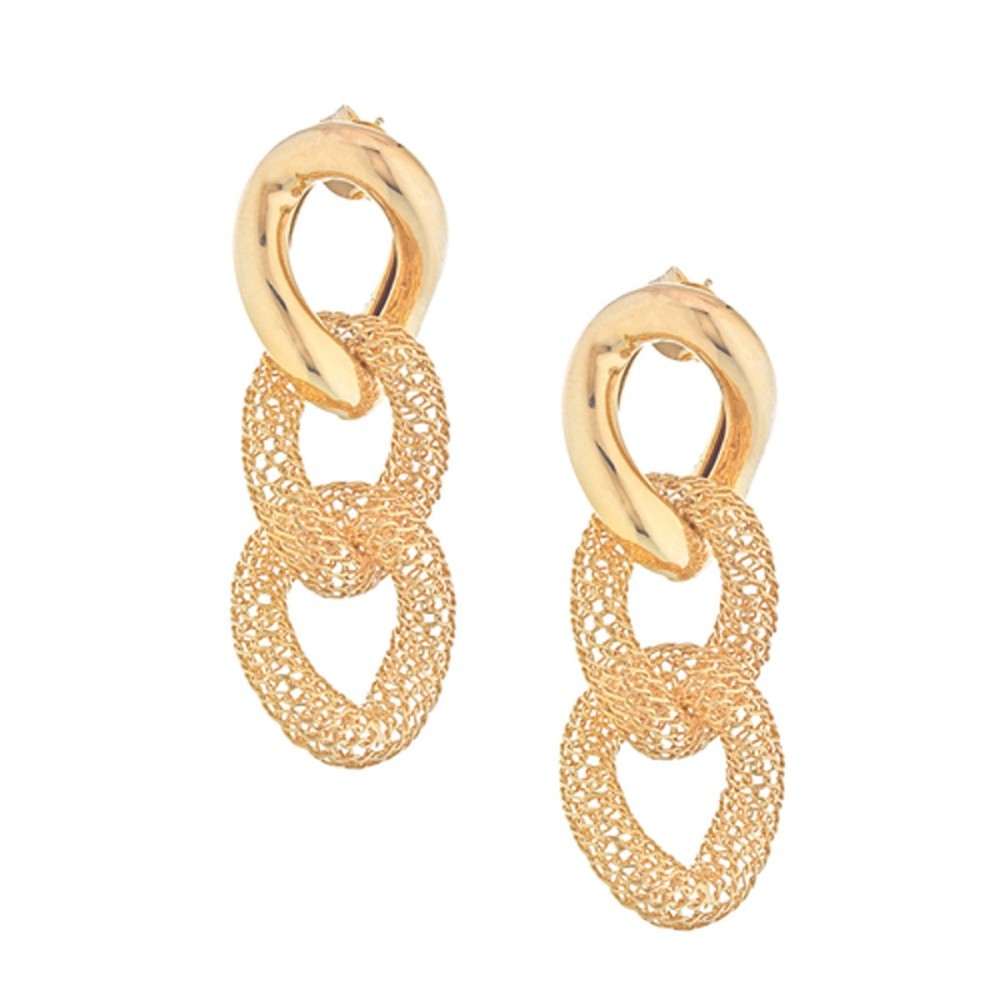 Gli Orecchini dea antica - Diva sono realizzati con maglie groumette lucide alternati a maglie ricamate. Lunghezza di 5 cm circa