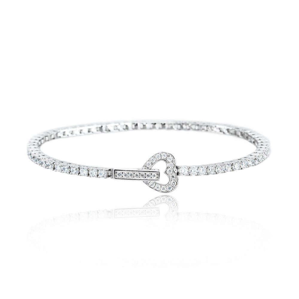 Bracciale tennis in argento con zirconi e chiusura a cuore.