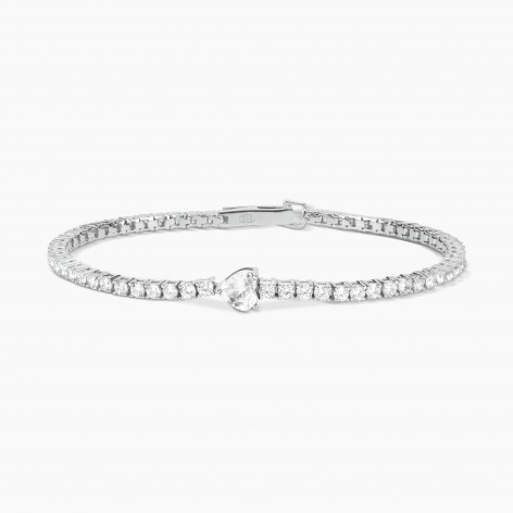 Bracciale tennis con zircone a cuore centrale - Mabina 533438-S