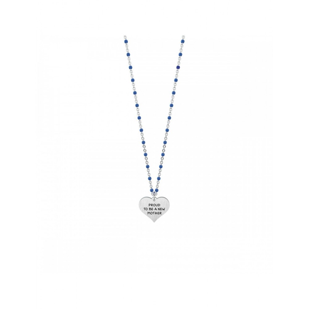 Collana corta in acciaio con ciondolo a cuore e catena rolò con inserimenti in smalto blu.