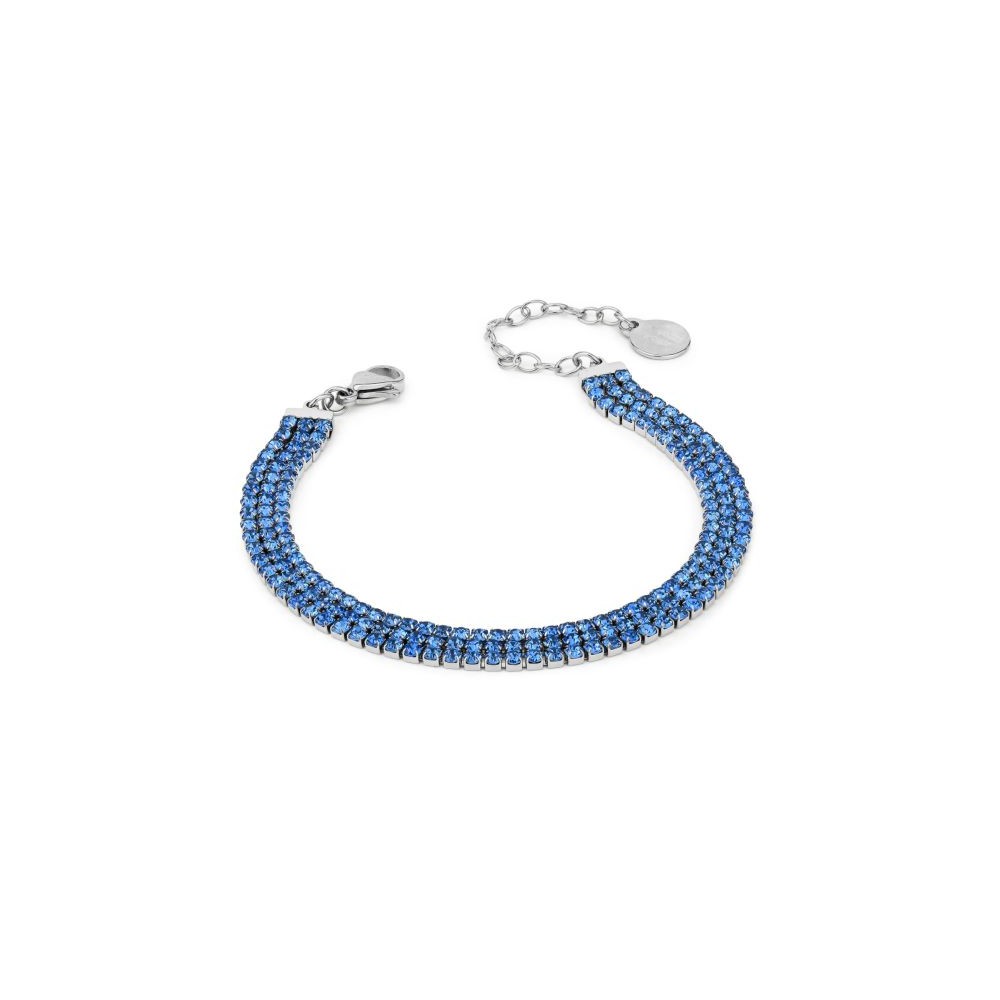 Bracciale in acciaio rodiato composta da tre fili di zirconi di colore blu.