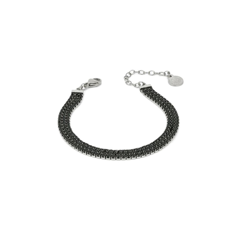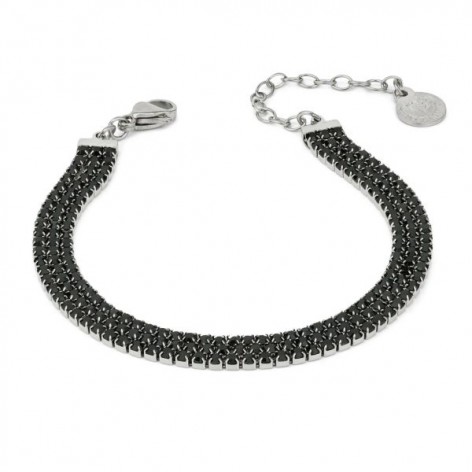 Bracciale in acciaio rodiato composta da tre fili di zirconi di colore nero.