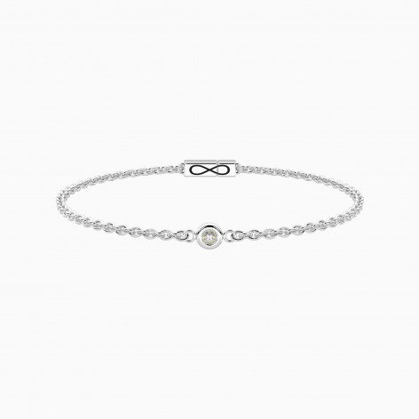 Bracciale unisex con catena forzatina in acciaio taglia 16. Diamante Lab-Grown cebtrale, chiusura non-reversibile con simbolo dell'infinito.