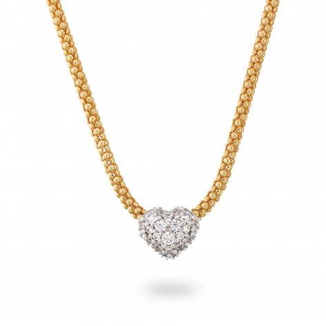 Collana Golden Maglia Popcorn con Cuore in Pavé di Cubic Zirconia - Bronzallure WSBZ02495Y.WR
