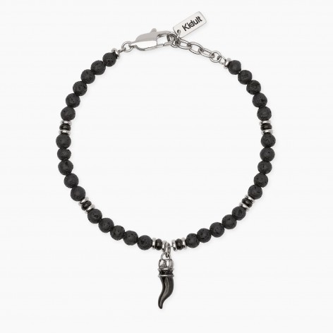 Bracciale uomo in acciaio con pietra lavica e cornetto - Kidult 831165
