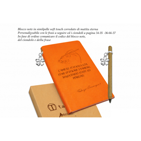 Il blocco è corredato di matita eterna coordinata e ciondolo decorativo in metallo, entrambi inclusi nel prezzo.