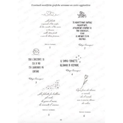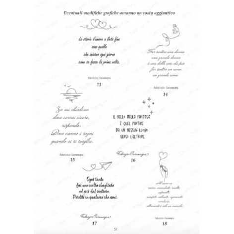La copertina può essere personalizzata scegliendo una delle frasi proposte nelle foto, rendendo ogni pezzo unico e carico di significato.