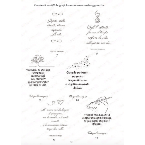La copertina può essere personalizzata scegliendo una delle frasi proposte nelle foto, rendendo ogni pezzo unico e carico di significato.