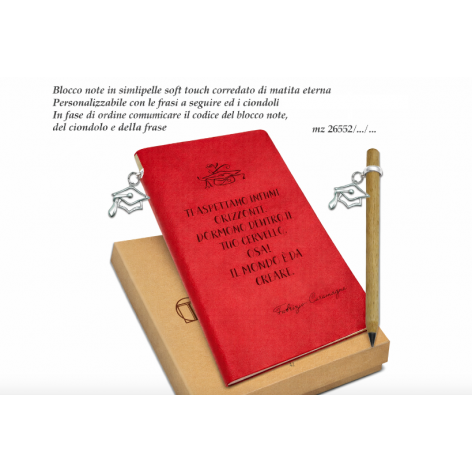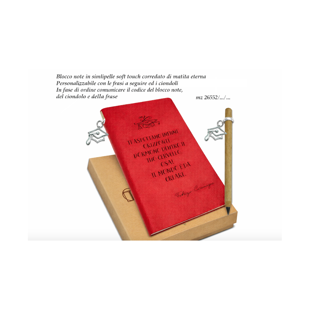 Il blocco è corredato di matita eterna coordinata e ciondolo decorativo in metallo, entrambi inclusi nel prezzo.
