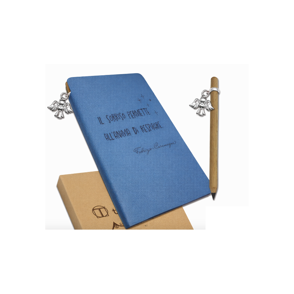 Il blocco è corredato di matita eterna coordinata e ciondolo decorativo in metallo, entrambi inclusi nel prezzo.