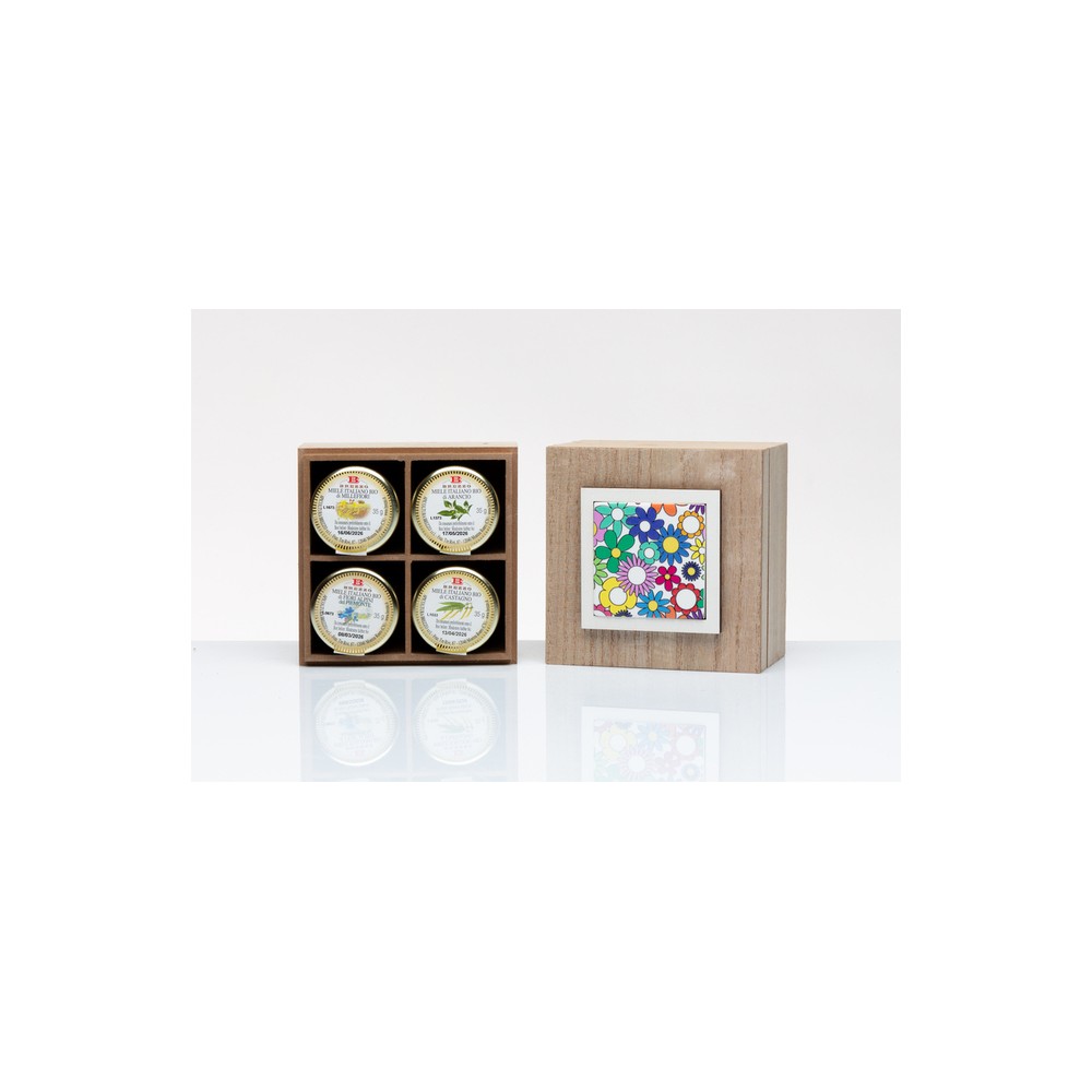 Scatola decostazione con 4 barattolini di miele biologico fiorello