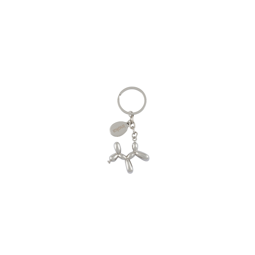 Portachiavi in acciaio a forma di cane stile palloncino.